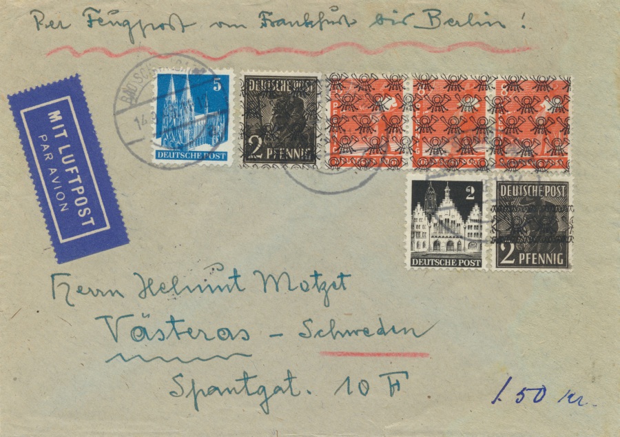 10 Pfennig Drucksachenporto und 25 Pfennig Luftpostgebühr