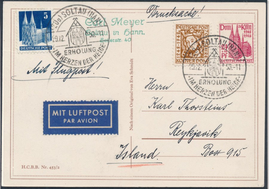 Luftpost-Drucksache Europa nach Island!