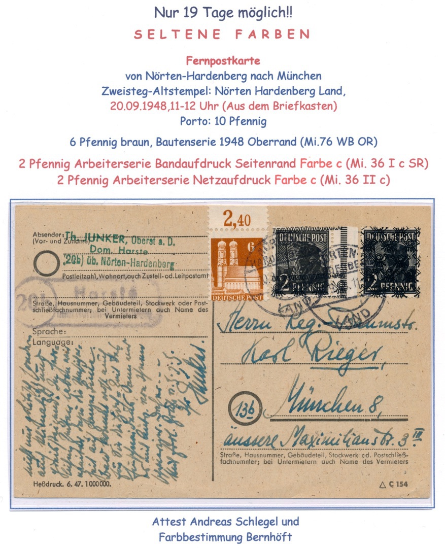 Da die Marken mit Band- und Netzaufdrucken nur bis zum 19.09.1948 gültig waren, gibt es in diesem kleinen Zeitraum von