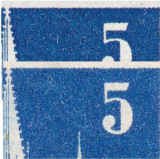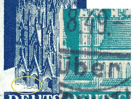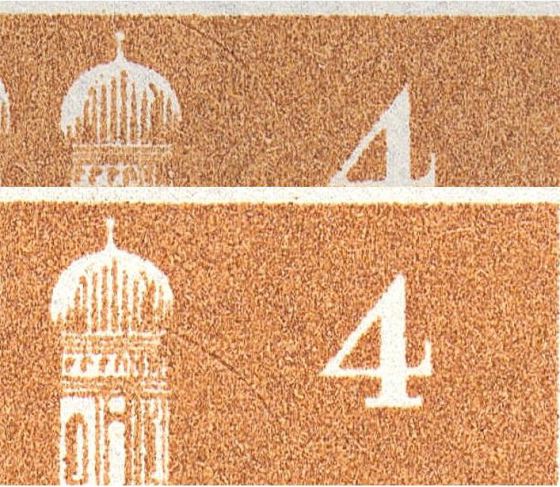 Da auch hier auf dem Feld 131 der Gummituchfehler auftaucht, ist es bewiesen, das die 5 Pfennig Type I in Wasserzeichen und Zähnung XF in der Druckerei Westermann herghestellt wurde.